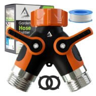 • Multipurpose 2 Way Hose Splitter – This spigot accessory makes it easier to run dual water hoses simultaneously so you can use one for watering the garden and the other for washing a car or your dog. Great for maximizing outdoor water efficiency.