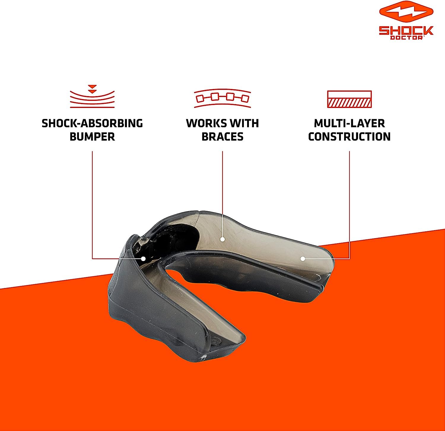 - FULL PROTECTION: Shock Doctor Pro Mouth Guard has multi-layer construction and a shock absorbing front bumper to protect your teeth and mouth