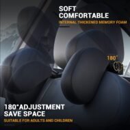 - Space saving – Both side headrest pillows can be rotated 180° to adjust the height, making them suitable for adults and kids over 4 years old. When not in use, simply lift the pillows up to save space.